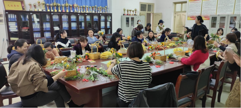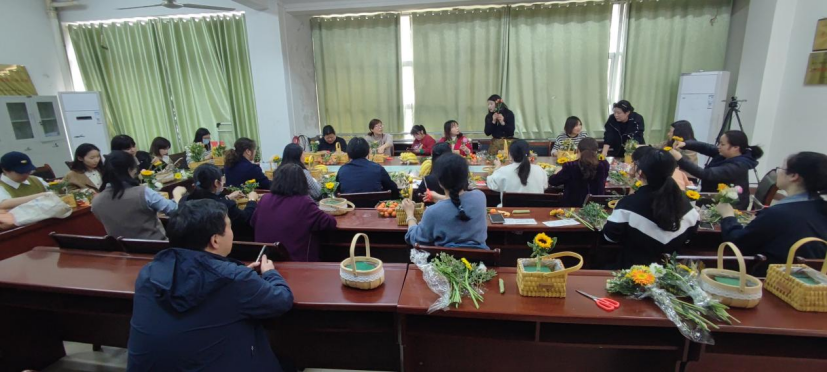 全体女教工在花艺师的指导下,开展了一堂“我眼中最美的花”的插花课,女教师们充分发挥个人想象力和才艺,将心中对美好生活的向往插在花篮里,将幸福和快乐收获在创造的过程中。