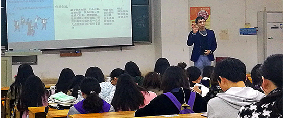 2017年3月30日下午,776net必赢官网776net必赢官网在教学楼5栋401教室上了一堂别具一格的创新创业课。我院将“大学生就业指导”课程和企业紧密结合起来,由创业成功的企业家为我院大三的学生带来了创业这一专题课程。本次创业专题讲座邀请到了精英实训创始人、顶层架构设计师肖珲先生。现场座无虚席,同学们反响强烈。