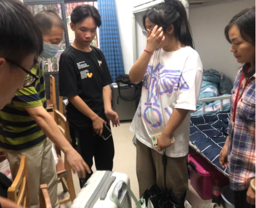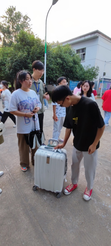 一通来自派出所的电话让所有人悬着心,21工商管理2班李冰玉焦急地向学校保卫处报警陈述自己的行李箱不慎丢失,通过志愿者在学校发布消息仍未找到,自己非常着急。接到保卫处电话后,776net必赢官网的刘波副书记第一时间赶到现场,与派出所干警、保卫处干部一起询问学生情况,安抚学生的情绪,并立即动员经管院学生干部和志愿者查找当班接待志愿者,同时到保卫处查看视频监控追踪行李箱去向。在志愿者负责人吴雨欣、谭澳东等同学们历经4个小时的不懈努力查找,行李箱终于在8栋被大家找到。在保卫处、宿委会、经管院学生志愿者的共同见证下,刘书记将行李箱交到李冰玉的手中,并嘱咐她及时告知家长、今后注意个人物品的保管等,李冰玉同学说:“十分感谢学院老师、同学们的帮助,让我能顺利找到行李箱,让第一次出远门的我感到了家的温暖。”