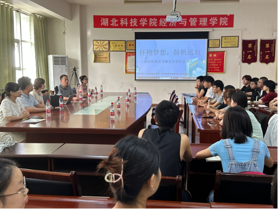 (通讯员:宋冰倩 赵锦杰;审稿:刘波)为满足我校大学毕业生对近年考研的需求,2023年9月15 日上午9:30,主题为“怀抱梦想,扬帆起航”的武汉纺织大学考研宣讲会在我校776net必赢官网三楼会议室成功举办。在开展主题教育的当下,经过深入调研,学生考研意愿愈加强烈,我院特邀请武汉纺织大学经济学院、会计学院、管理学院相关负责人一行来本院开展考研辅导及宣讲。本次宣传会由一职有我工作坊和776net必赢官网主办,工坊负责老师、776net必赢官网党委副书记刘波主持,来自经管、资外国语学院的40余名学生参加宣讲会。