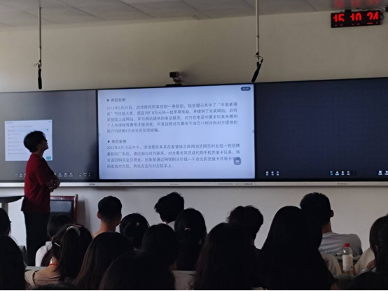 接着活动进入到为同学们进行反诈教育阶段,欧阳大昭首先从三个方面切入,分别为同学们介绍了电信诈骗、网贷诈骗以及如何预防诈骗三个部分,为了更有效地帮助同学识别诈骗,他还通过生动形象的案例分析,配合精心设计的模拟场景,向在场同学展示了当前典型的几类诈骗手段。他提醒同学:“面对突如其来的‘好消息’或‘紧急通知’,一定要保持冷静,不轻信、不透露、不转账。遇到可疑情况,及时挂断电话,通过官方渠道进行核实。”此外,他还鼓励大家安装国家反诈中心APP,利用反诈软件。