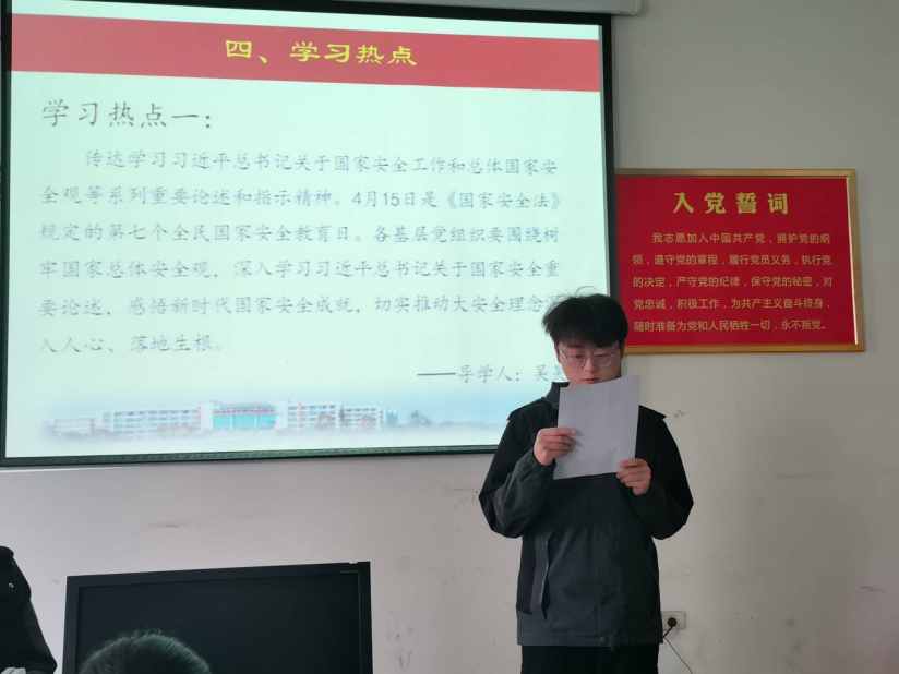 (本网讯通讯员:王晶;审稿:刘波)在第七个“全民国家安全教育日”来临之际,为进一步加强国家安全宣传教育,提升全院师生的国家安全意识、敌情意识和防范能力,树牢总体国家安全观,增强维护国家安全的责任感和使命感。2022年4月14日,经管院教师党支部、学生党支部有序组织开展“强化意识防风险,深化整改促发展”主题党日活动,教工支部由傅建华老师主持,学生支部由孙珏老师主持,支部的全体党员参加了活动。