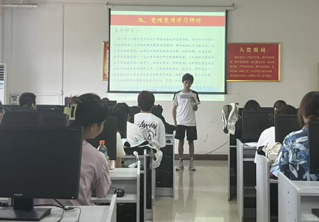 两位学生党员代表带领大家进行了党规党情的学习研讨。学生党员黄再银深入学习了习近平总书记关于全面从严治党的讲话,呼吁各学生党员深刻把握党的十八大以来全面从严治党的经验并推动党的建设这项伟大工程不断深化发展。用新时代中国特色社会主义思想凝心铸魂,持续开展党内集中教育,使党员、干部补足精神之钙,坚守共产党人的精神家园。学生党员张北玥表示要深刻领悟“两个确立”的决定性意义,增强“四个意识”,坚定“四个自信”,坚定不移担负“两个维护”政治责任。敢于斗争、善于斗争,坚定不移推动正风肃纪反腐向纵深发展,更好担负起党和人民赋予的使命责任。