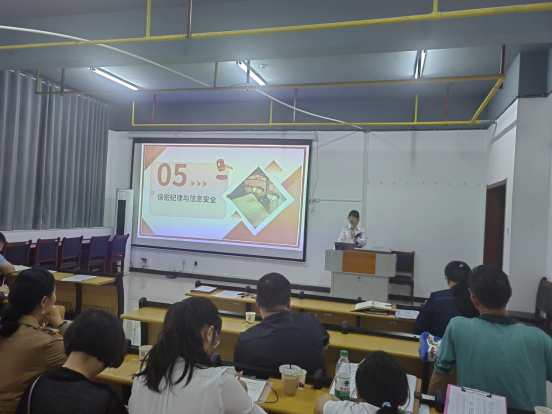 4月份,组织全院师生参与中国普法微信公众号举办的保密知识竞答活动;兼职保密员参加了全国保密教育线上培训。5月15日,组织全体教师在揽胜楼1403室召开集体保密教育学习活动。学院党委书记吴乐盈讲述了保密纪律与信息安全的主题课程,通过PPT 展示了各高校多起具有代表性的违反保密纪律典型案例,详细讲解了案例中的关键信息和风险防范要点。她还着重强调保密意识的重要性,指出保密工作不仅关乎国家安全,更与学校的教学科研、师生的个人权益紧密相连;每一位党员干部都要提高政治站位,带头遵守保密规定,充分认识到保密工作在维护国家安全、保障学校稳定发展中的关键作用,发挥先锋模范作用,带动全院师生增强保密意识。