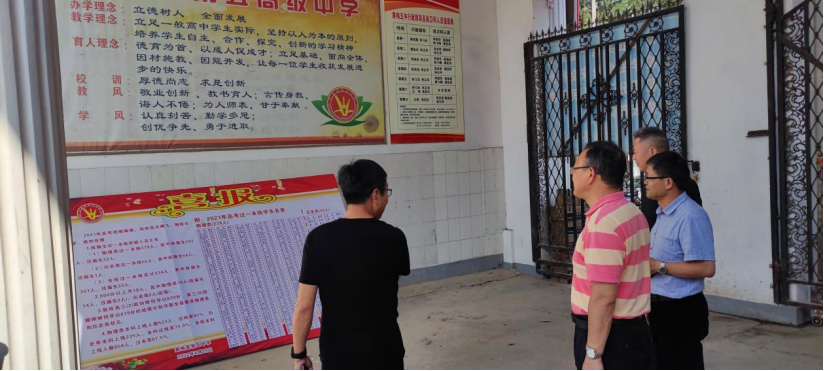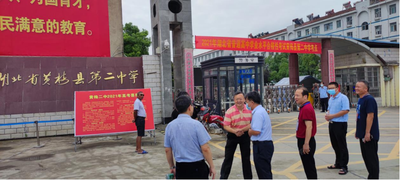 在黄梅二中与教育局长吴旭东等宣讲交流