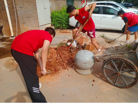 (青马班成员对土堆进行清理)