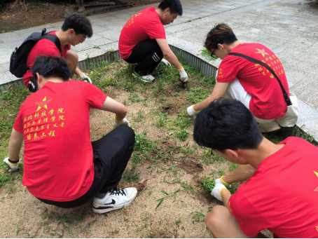 (青马班成员对沙地进行除草)